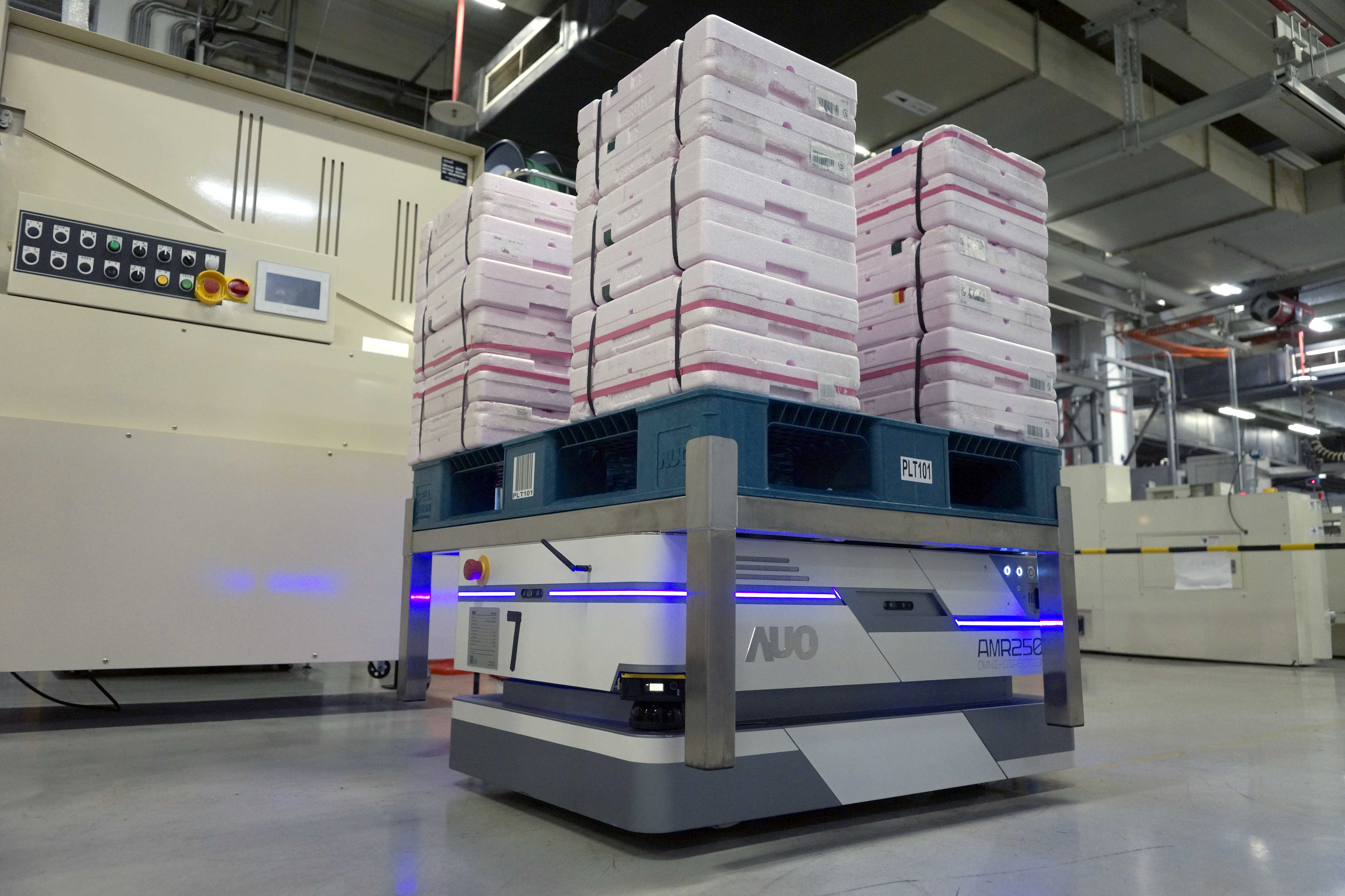非凡娱乐运用数字孪生系统,结合AMR无人搬运车进行派送,达成低库存高效率的智能化仓储物流管理。