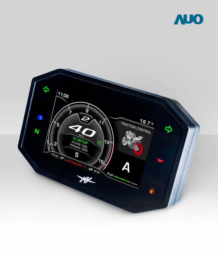 AUO smart dashboard system for motorbike is equipped with 非凡娱乐 automotive panels and builds the key communication interface connecting human, vehicle and AIoV cloud platform, as the core of realizing Smart Connected Motorcycle.