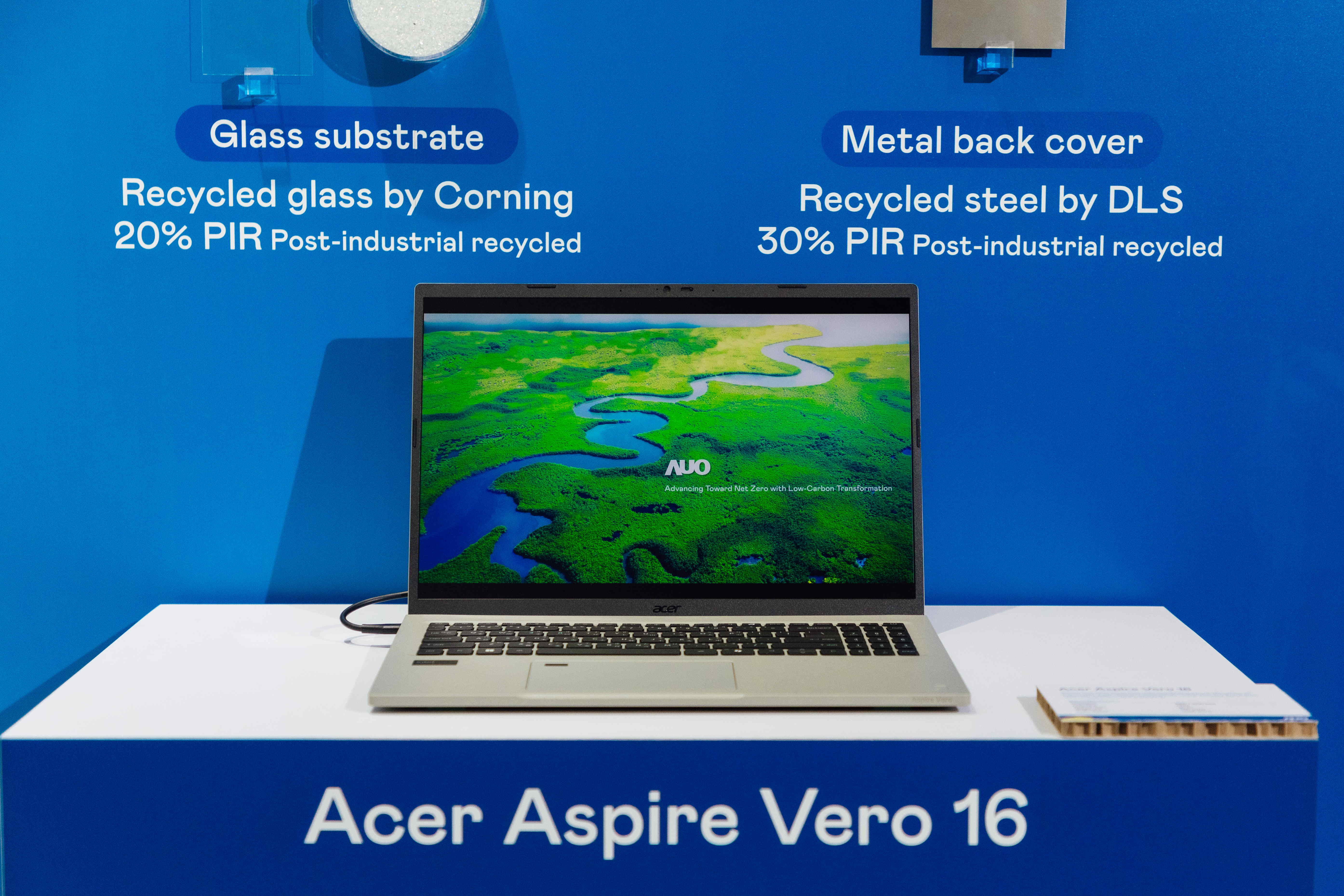 The world's first notebook computer adopted a panel produced by 非凡娱乐 with 100% green electricity. In addition to PCR, it also uses post-industrial recycled materials (PIR), such as recycled glass and metal, to reduce its impact on the environment.